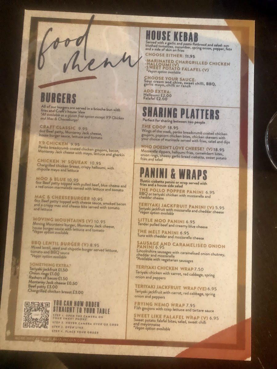 Welcome to Craft Lincoln, a hidden gem located at 272 High St, Lincoln. This vibrant eatery offers a delightful blend of sharing platters, paninis, and unique wraps that tempt the taste buds. Highlights from their menu include the indulgent The Coop sharing platter and the flavorful Pollo Popper Panini. For those craving plant-based options, the Teriyaki Jackfruit Panini and Sweet Like Falafel Wrap won't disappoint.